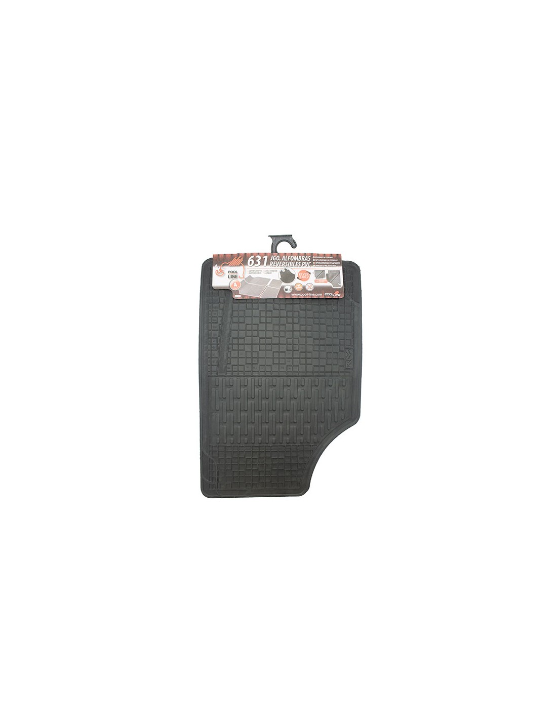 Juegos alfombras "Reversible" y recortables marca propia POOL-LINE goma 100% color negro. Fácil de montar para todos tipos de coches (Universal). Múltiples combinaciones de recorte para un perfecto ajuste en el espacio de su vehículo, antideslizante, indeformables, lavables y larga duración.