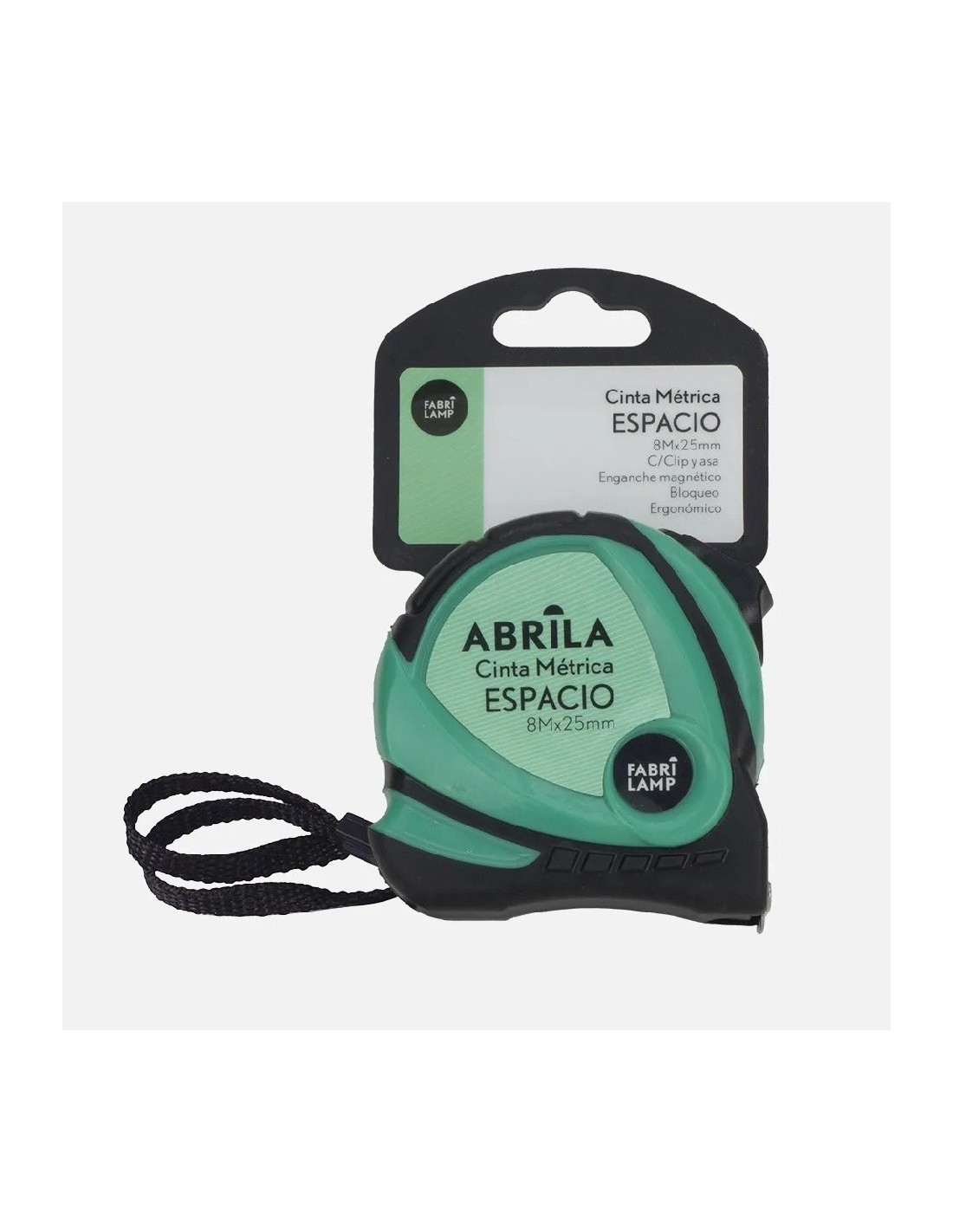 CINTA METRICA ESPACIO 8MX25MM NEGRO/VERDE CLIP,ASA